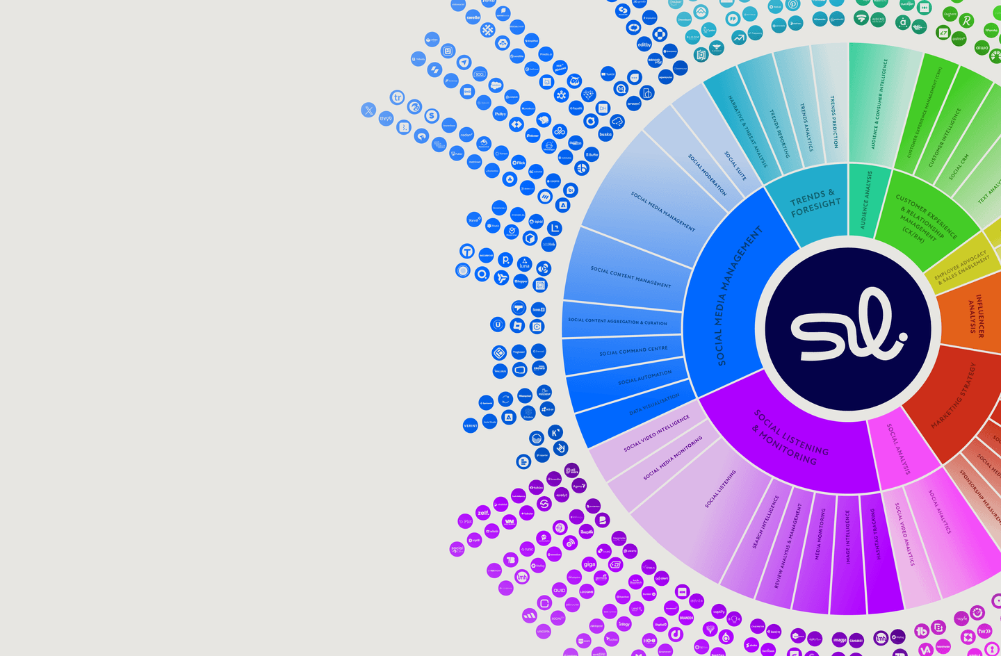 To begin compiling this hefty list of 500+ (yep, you read that right) social intelligence technology providers our tool guru, Ben Ellis, started with our own database: the SI Lab Tech vendor’s directory where we already had more than 170 registered on our platform. However, based on conversations we’ve been having with the SI Lab community over the last few years, we knew the potential market was so much bigger. And so, we also reached out to our followers on LinkedIn to hear exactly what tools they were using for their different use cases. On top of this, Ben drew upon his existing knowledge of social intelligence solutions providers. Finally, to make sure we really covered all our bases, he also did A LOT of desk research, scouring MANY software review platforms, including G2, TrustRadius, and Capterra, as well as social media channels (LinkedIn, Reddit…you know the ones)